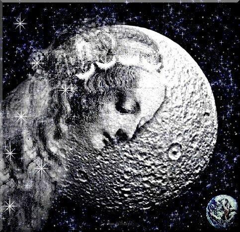 Source d'innombrables mythes, légendes et cultes donnant aux déesses son image : Isis, Astarté, Ishtar, Artémis, Hécate, etc... dans la MYTHOLOGIE Grecque, elle est nommée Séléné, Lune pour les romains.